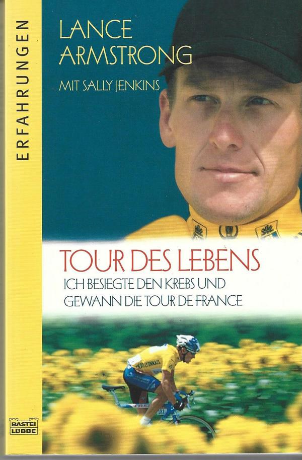 Tour des Lebens.Ich besiegte den Krebs undgewann die Tour de France.Lance Armstrong mit Sally JenkinsVerlag: Bastei Lübbe 2000ISBN 3404614968Taschenbuch 334 SeitenFormat: 12,5 x 18,5 x 2,2 cmZustand: sehr gut