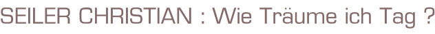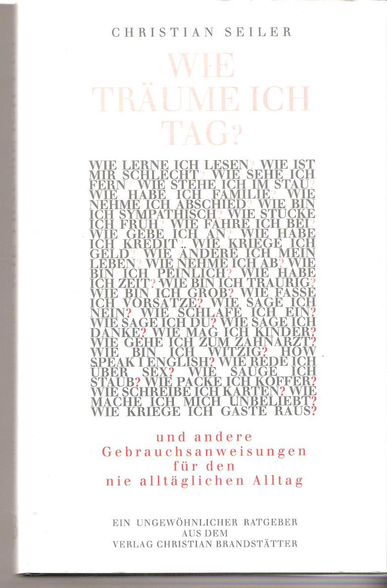 Wie Träume ich Tag ? Und andere Gebrauchsanweisungen für den nie alltäglichen AlltagISBN 3854476345Autor: Christian SeilerVerlag: Christian Brandstätter 1996Buch 1, 128 SeitenFormat: 14 cm x 21,5 cm x 2 cmGewicht: 293 gZustand: gutRatgeber -