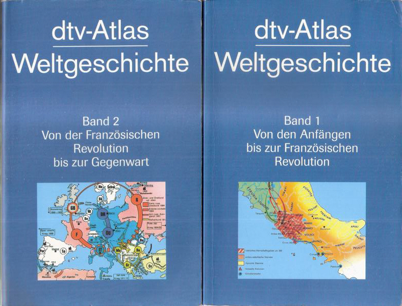 dtv-Atlas - Weltgeschichte in II BändenBand 1) Von den Anfängen bis zur Französischen RevolutionBand 2) Von der Französischen Revolution bis zur GegenwartVon: Hermann Kinder / Werder HilgemannISBN 3423030011Verlag: dtv München, 33. Auflage 1999Zwei Taschebücher 627 SeitenFormat: 12 x 19 x 3,8 cmGewicht: 750 gZustand: gut, leichte Gebrauchsspuren