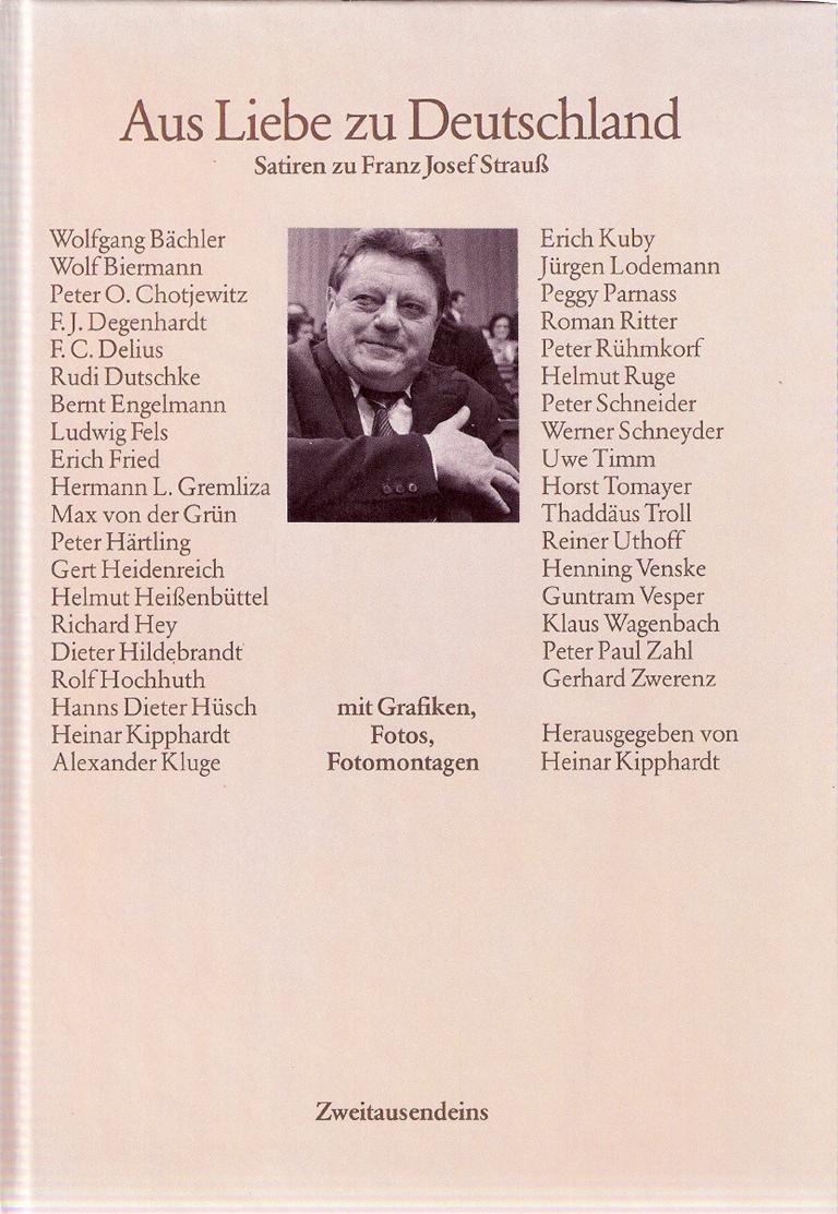 Satiren zu Franz Josef Straußmit Grafiken, Fotos, FotomontagenHerausgeber: Heinar KipphardtVerlag: Zweitausendeins 1980(c) Verlag Autorene Edition GmbHgebundene Ausgabe 0, 224 SeitenFormat: 15 cm X 22 cm x 2 cmGewicht: 375 gZustand: sehr gut