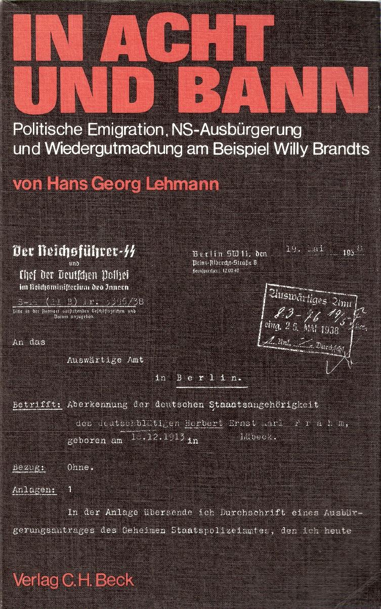 Politische Emigration, NS-Ausbürgerungund Wiedergutmachung am Beispiel Willy BrandtsISBN 3406065015von Hans Georg LehmannVerlag: C.H.Beck 1976Broschiert, 387 SeitenFormat: Gewicht: 510 gZustand: gut, Buchschnitt Standspuren