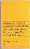 Kritik der Mitbestimmung (Nm - 8519) Titel: Kritik der Mitbestimmung - Partnerschaft oder Klassenkampf ? Mit Beiträgen von Frank Deppe... 2,90 Euro (Kleinunternehmer im Sinne vom § 19 UStG. Es wird keine MWSt. ausgewiesen.)