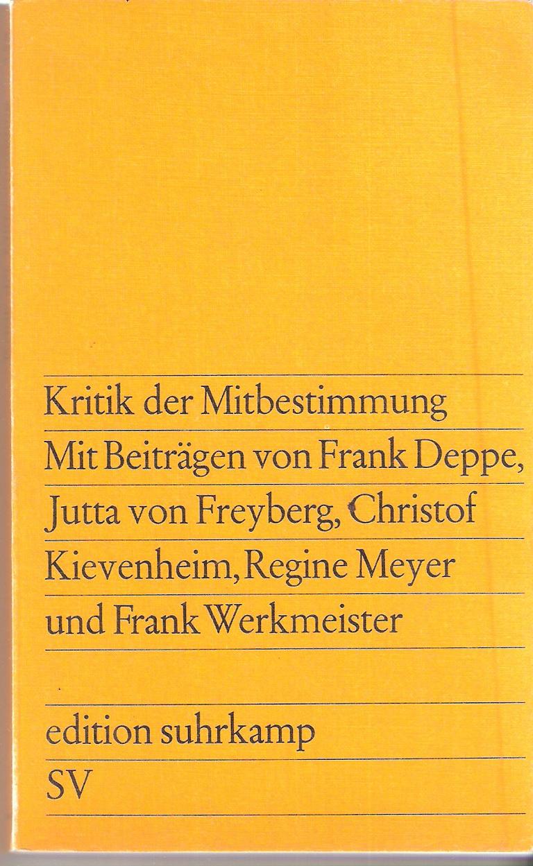 Titel: Kritik der Mitbestimmung - Partnerschaft oder Klassenkampf ? Mit Beiträgen von Frank Deppe, Jutta von Freyberg, Christof Kievenheim, Regine Meyer und Frank Werkmeister