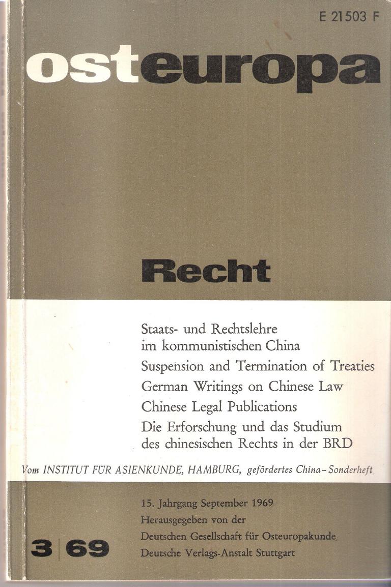 Titel: Osteuropa - Recht - Staats - und Rechtlehre im kommunistischen China Die Erforschung und das Studium des chinesischen Rechts in der BRD Herausgegeben von der Deutschen Gesellschaft für Osteuropakunde Verlag: Deutsche Verlagsanstalt Stuttgard 3 / 69 Softcover, 315 SeitenFormat: 16 x 24 x 1,3 cmGewicht: 276 gZustand: gebraucht, gut