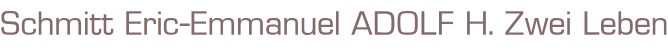 Titel: Adolf H. Zwei LebenISBN 9783250601074Autor: Eric-Emmanuel SchmittVerlag: Ammann Verlag (c)2007 ZürichBuch mit Schutzhülle, 508 SeitenFormat: 13 x 20,5 x 4 cmGewicht: 654 gZustand: Buchschnitt leichte Standspuren, sonst sehr guter ZustandZeitgeschichte - Biografie - Roman