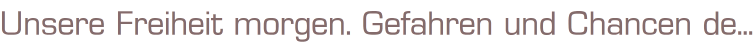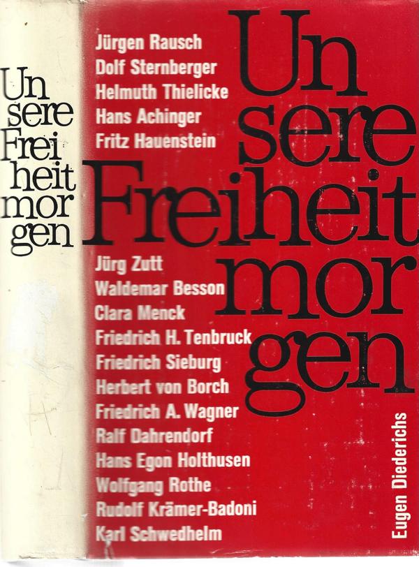 Unsere Freiheit morgen. Gefahren und Chancen der modernen Gesellschaft.Herausgeber: Georg BöseVerlag: Eugen Diederichs Verlag 1. Auflage 1963Buch mit Schutznülle, 314 SeitenFormat: 13,5 x 21,5 x 3 cmZustand: gut, leichte Gebrauchsspuren