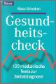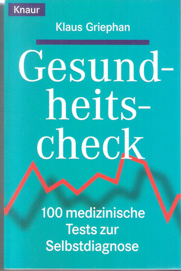 Titel: Gesundheitscheck - 100 medizinische Tests zur Selbstdiagnose ISBN 3426822660Autor: Klaus Griephan Verlag: Knaur 1999Taschenbuch, 394 Seiten Format: 12,5 cm X 19 cm x 2,5 cmGewicht: 304 gZustand: gut