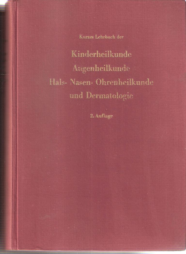 Kurzes Lehrbuch der Kinderheilkunde, Augenheilkunde, Hals- Nasen- Ohren-heilkunde und DermatologieMit 246 teilweise farbigen AbbildungenHerausgeber: Prof. Dr. Dr. Hermann MaiVerlag: J. F. Lehmanns Verlag München 1962Leinen Ausgabe 1000 Seiten Format: 16 x 23 x 5 cmGewicht: 1.885 gZustand: gut, Buchdeckel an den Ecken angestoßen Medizin - Gesundheit - Lehrbuch - Sachbuch
