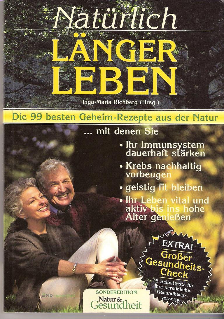 Titel: Natürlich länger lebenDie 99 besten Geheim- Rezepte aus der Natur ISBN 3932017285 Herausgeber: Inga-Maria RichbergVerlag: FID 2006 Sonderedition Natur & GesundheitSoftcover, 159 SeitenFormat: 15 cm X 21 cmGewicht: 320 gZustand: gut
