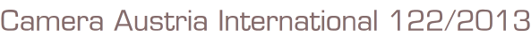 Camera Austria International 122/2013Verlag: Camera Austria 2013Magazin 98 SeitenFormat: 21 x 29,5 x 1,3 cmZustand: sehr gut Fotografie - Photographie