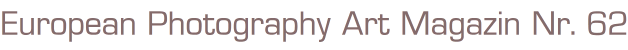 Titel: European Photography Art Magazin Nr. 62Magazin Softcover, Format: 24 x 30 x 1 cmGewicht: 634 gZustand: gut, leichte GebrauchsspurenFotografie