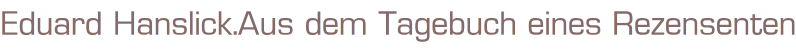 Titel: Eduard Hanslick. Aus dem Tagebuch eines Rezensenten.Gesammelte MusikkritikenHerausgeber: Peter WapnewskiISBN 376180959xVerlag: Bärenreiter Verlag Kassel, (c) 1989Buch mit Schutzhülle, 363 Seiten Format: 13,5 x 22,5 x 3 cm Zustand: sehr gut