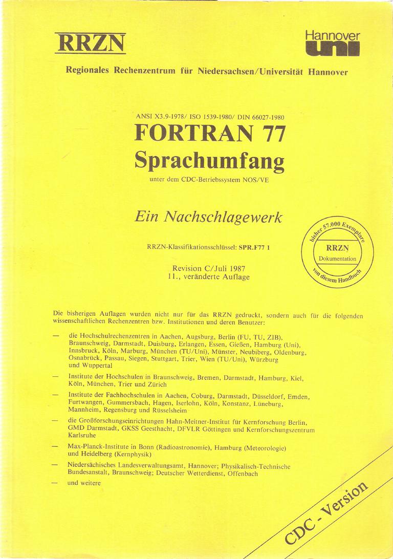Titel: ANSI X3.9-1978 / ISO 1539-1980/ DIN 66027-1980Fortran 77 Sprachumfang unter demCDC-Betriebssystem NOS/VEEin NachschlagewerkRRZN-Klassifikationsschlüssel: SPR.F77 1Revision C/Juli 198711. veränderte AuflageHeft, SoftcoverFormat: 21 x 29,5 x 1 cmGewicht: 465 gZustand: leichte Stand - und Gebrauchsspuren, Beruf - Bildung - Nachschlagewerk