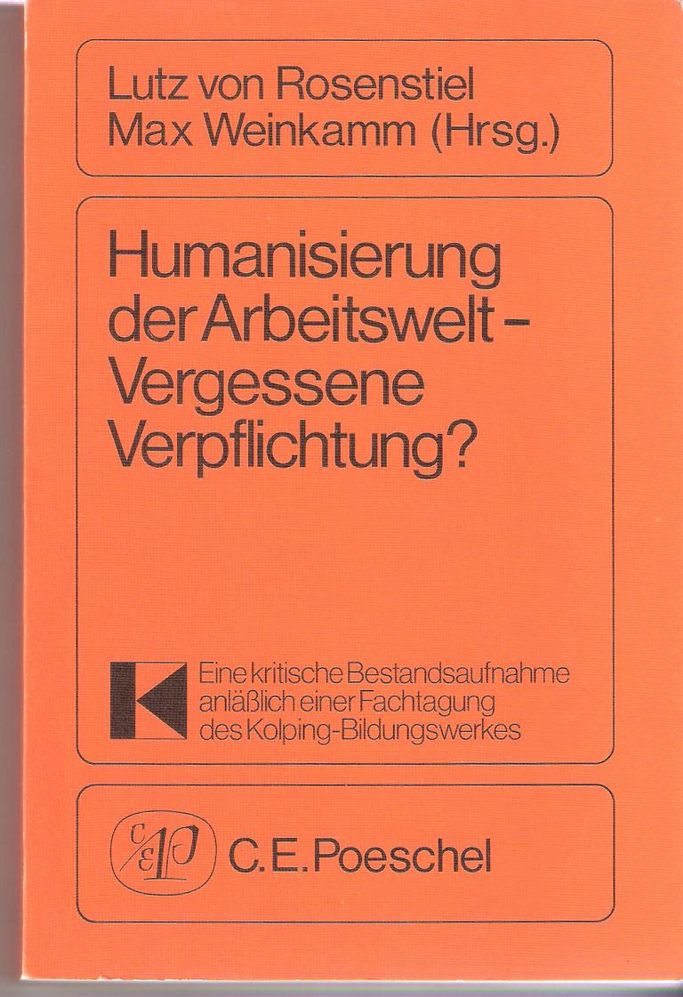 Humanisierung der Arbeitswelt - Vergessene Verpflichtung?Eine Kritische Bestandsaufnahme anläßlich einer Fachtagungdes Kolping-BildungswerkesISBN 3791002678Herausgeber: Lutz von Rosenstiel - Max WeinkammVerlag: C. E. Poeschel Stuttgart 1980Broschierte Ausgabe, 258 SeitenFormat: 15,5 cm x 23 cm x 2 cmGewicht: 472 gZustand: gut Wirtschaftspsychologie - Beruf - Bildung
