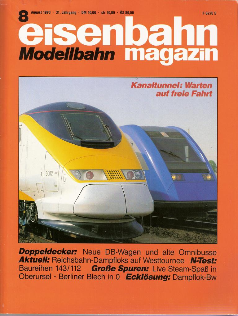 Eisenbahnmagazin Modellbahn 8/1993Magazin 102 SeitenFormat: 21 cm x 29,5 cmGewicht: 270 gZustand: gut