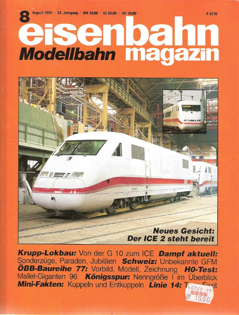 Eisenbahnmagazin Modellbahn 8/1995Magazin 110 SeitenFormat: 21 cm x 29,5 cmGewicht: 290 gZustand: gut