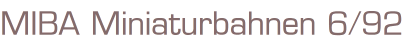MIBA Miniaturbahnen 6/1992Magazin 98 SeitenFormat: 21 cm x 29,5 cmGewicht: 288 gZustand: gut
