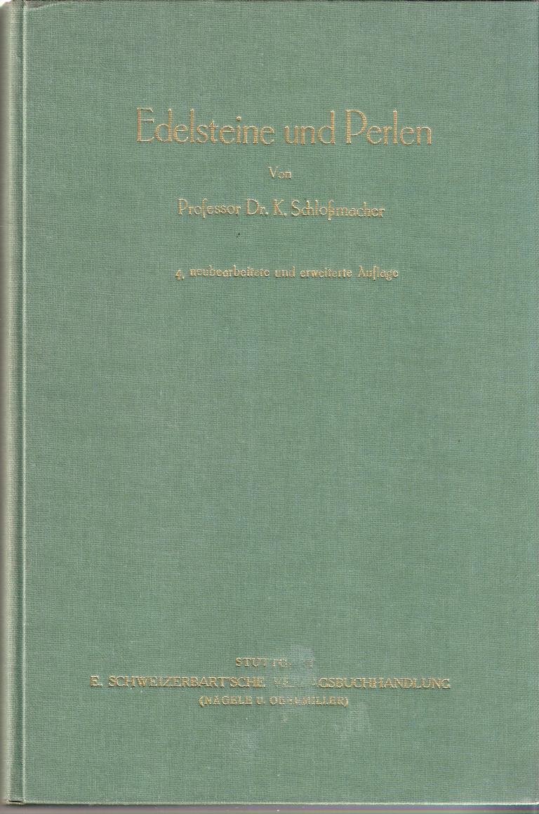 Titel: Edelsteine und PerlenAutor: Professor Dr. K. SchloßmacherVerlag: E. Schweizerbartsche Verlags-buchhandlung Nägele und Obermiller4. Auflage 1965Buch gebunden, 368 SeitenFormat: 16 x 24,5 x 2 cmGewicht: 848 gZustand: sehr gutMineralien - Sammler - Rarität