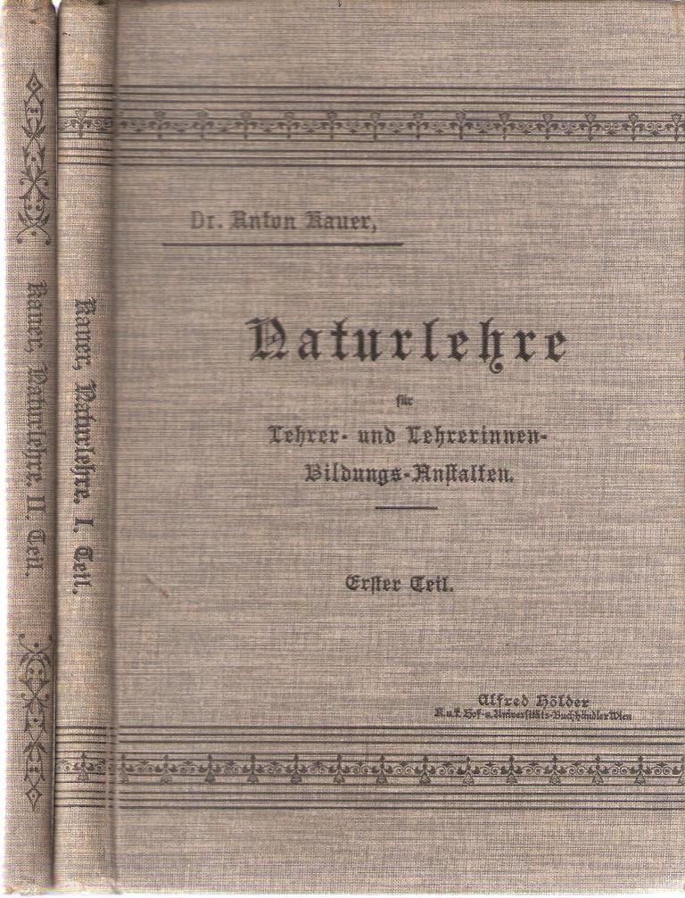 Titel: Naturlehrefür Lehrer - und Lehrerinnen-Bildungs-Anstalten II BändeAutor: Dr. Anton BauerBand 1.) Übereinstimmung und Verschiedenheitder Körper. Wärmelehre. Magnetismus.ElektrizitätBand 2.) ChemieVerlag: Wien 1908 Alfred HölderK. u K. Hof- und Universitäts-Buchhänderzwei Bücher Gebundene AusgabenFormat: 14 x 21,5 x 2,5 cmGewicht: 567 gZustand: dem alter entsprechend gut erhaltene Exemplare mit leichten Standspuren.Papier ganz leicht nachgedunkelt.Band 2 mit mehreren EselsohrenNatur