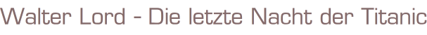 Titel: Die letzte Nacht der Titanic ISBN 3704320196 Autor: Walter Lord Verlag: KaiserBuch 1, 237 SeitenFormat: 14 x 21,5 x 2,8 cmGewicht: 423 gZustand: gut