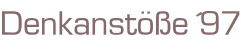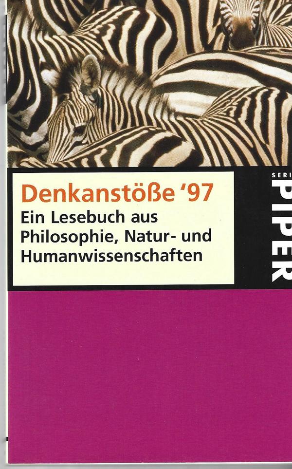 Denkanstöße ´97Ein Lesebuch aus Philosophie,Natur- und HumanwissenschaftenHerausgeber: Heidi Bohnet-von der ThüsenVerlag: Piper München (c) 1996Taschenbuch 190 SeitenFormat: 12 x 19 x 1 cmZustand: gut