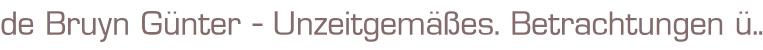 Autor: Günter de BruynTitel: Unzeitgemäßes. Betrachtungen überVergangenheit und GegenwartISBN 3100096339Verlag: S. Fischer Verlag, Frankfurt a.M., (c) 2001Hardcover, 59 SeitenFormat: 12,8 x 21,8 x 0,8 cmGewicht: 173 gZustand: gut