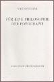 Titel: Für eine Philosophie der FotografieISBN 3923283199Autor: Vilèm FlusserVerlag: European Photography 7. Auflage 1994Softcover, 77 SeitenFormat: 14 x 21 x 0,8 cmGewicht: 168 gZustand: sehr gutGenre: Fotografie - Philosophie