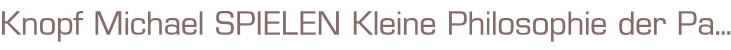 Titel: SpielenKleine Philosophie der PassionenAutor: Michael KnopfISBN 3423202661Verlag: dtv Verlag GmbH & Co.KG MünchenOriginalausgabe Juli 1999Taschenbuch 123 SeitenFormat: 12 x 19 x 1 cmGewicht: 167 gZustand: gutPhilosophie