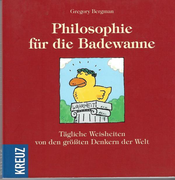 Titel: Philosophie für die Badewanne:Tägliche Weisheiten von dengrößten Denkern der WeltAutor: Bergman Gregory Verlag: Kreuz Verlag Stuttgart 2004Softcover, 191 SeitenFormat: 15 x 15 x 1,5 cmZustand: gut