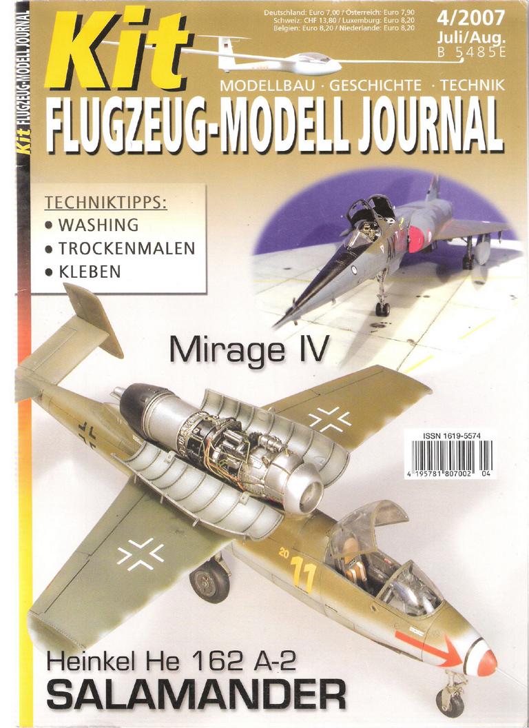 Modellbau - Geschichte - Technik- Techniktipps: Washing - Trockenmalen - Kleben- Mirage IV- Heinkel He 162 A-2 SalamanderZeitschrift, 66 SeitenFormat: 21 cm x 29,5 cmGewicht: 210 gZustand: gut