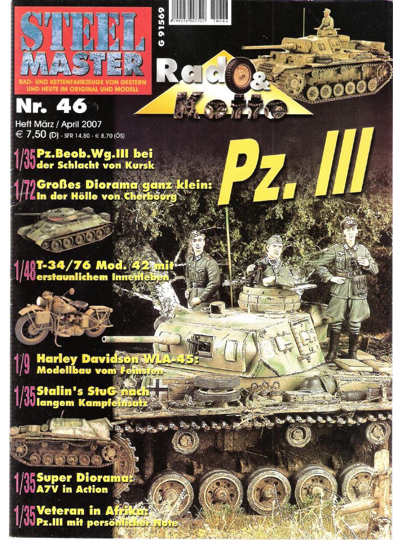 - 1/35 Pz.Beob.Wg.III bei der Schlacht von Kursk - 1/72 Großes Diorama ganz klein: In der Höhle von Cherbourg - 1/48 T-3476 Mod. 42 mit erstaunl. Innenleben - 1/9 Harley Davidson WLA-45: Modellbau vom Feinsten - 1/35 Stalin´s StuG nach langem Kampfeinsatz - 1/35 Super Diorama: A7V in Action - 1/35 Veteran in Afrika: Pz.III mit persönlichedr Note