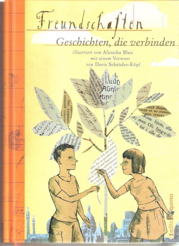 Titel: Freundschaften Geschichten, die verbinden - illustriert von Aljoscha Blaumit einem Vorwort von Doris Schröder - Köpf ISBN 9783898358781Verlag: Edition Quinto 2007 Hardcover, 215 Seiten Format: 17,5 cm x 24,5 cm x 2,2 cmGewicht: 725 gZustand: gebraucht, gutJugendbuch