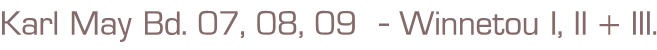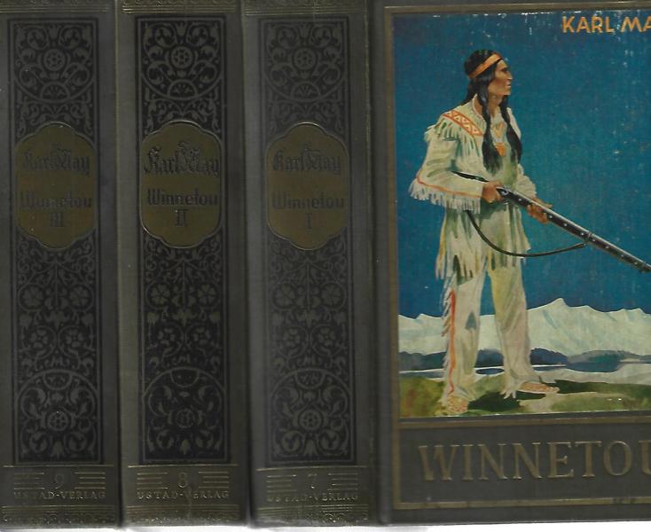 Titel: Winnetou I - Band 7 ,Winnetou II. Bd. 8 + Winnetou III. Bd. 09ReiseerzählungAutor: Karl May Verlag: Karl May Verlag Bmberg(c) 1951 Joachim Schmid Verlag3 Hardcover-Bände 567, 592 + 574 SeitenFormat: 11 x 17,5 x 4 cm x 3 StückGewicht: 418 gZustand: leichte Gebrauchsspuren