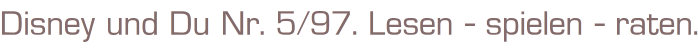 Disney und Du Nr. 5/97. Lesen - spielen - raten.Disney Enterprices 1997Comic-Heft 34 SeitenFormat: 21 x 28 cm Zustand: sehr gut
