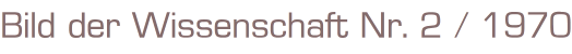 bild der wissenschaft Nr. 2 / 1970Magazin, 190 SeitenFormat: 23 x 29,5 cm Gewicht: 331 gZustand: Lager- und Gebrauchsspuren