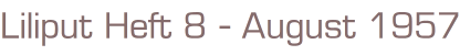 Die fröhliche Jugendzeitschrtift LiliputHeft 8 - August 1957Heft 46 SeitenFormat: 17 x 25 cmGewicht: 92 gZustand: Lager- und Gebrauchsspuren,Seiten unten etwas aufgerolltJugendzeitschrift