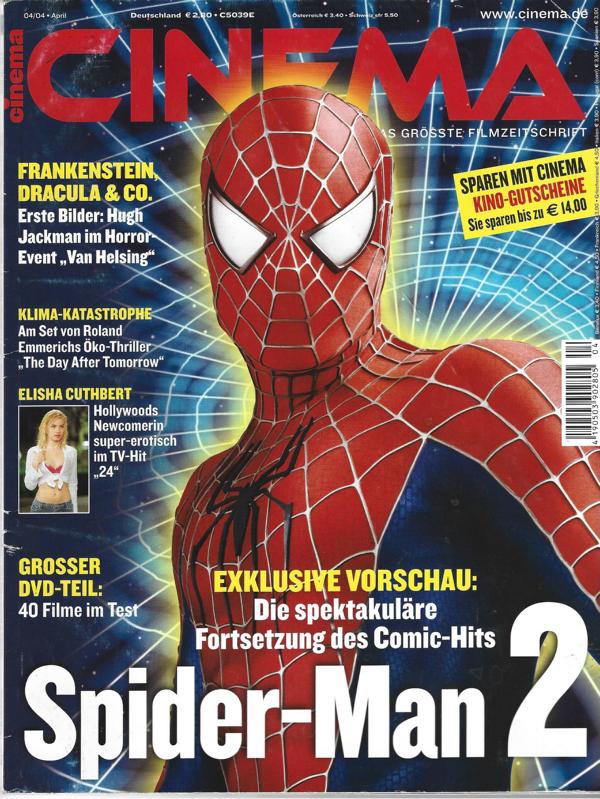 Europas führende FilmzeitschriftCinema Nr. 4/2004Titel: Spider-MAN 2Magazin, 150 SeitenFormat: 20,5 x 28 x 1 cm Zustand: gut Genre: Film - Filmmagazin