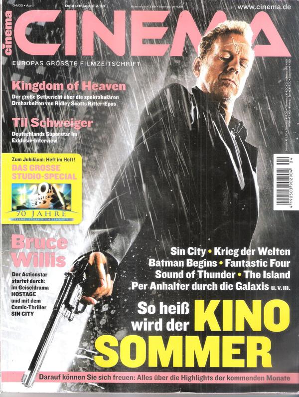 Europas größte FilmzeitschriftCinema Nr. 4/2005Titel:Kingdom of HeavenTil SchweigerBruce WillisMagazin, 138 SeitenFormat: 20,5 cm x 28 cm Zustand: gut Genre: Film - Filmmagazin