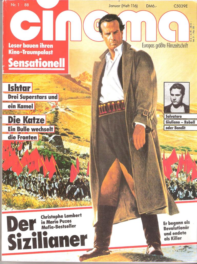 Europas größte FilmzeitschriftCinema Nr. 1/1988Titel: Der SizilianerMagazin, 21 cm x 28 cmGewicht: 436 gZustand: gut Genre: Film - Filmmagazin