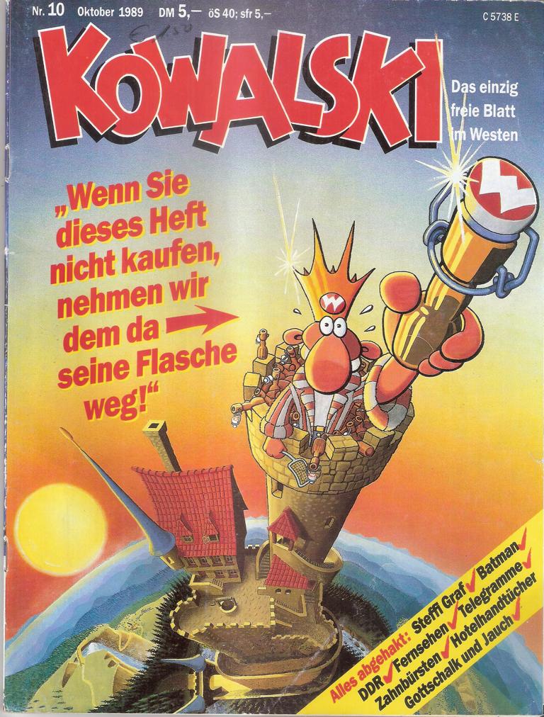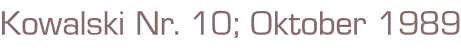Kowalski Nr. 10; Oktober 1989Verlag: Semmel Zeitschriften Verlag, KielMagazin, 66 SeitenFormat: 21 x 28 cmGewicht: 155 gZustand; leichte Gebrauchsspuren am Cover,Seiten sauber