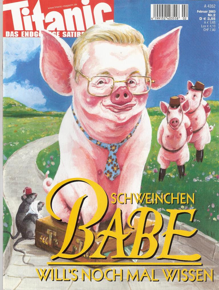 Titanic - Magazin Februar 2003Schweinchen Babe will`s noch mal wissenMagazin, 66 Seiten Format: 21 cm x 28 cmGewicht: 138 gZustand: dem Alter entsprechend gut erhaltenes Exemplar