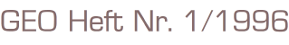 GEO - Das neue Bild der ErdeMagazin Januar 1996Format: 21,5 cm x 27 cmGewicht: 468 gZustand: gut, kleinere Lagerspuren