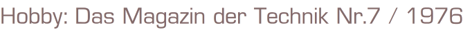 HOBBY / Magazin der Technik Nr.7 / 1976Yamaha XS 650: Verlag: tsv ( top special )Redaktion: Georg Franken, Klaus Jopp, Uwe KristZeitschrift: 96 Seiten Format: 21,5 cm x 28 cmGewicht: 195 gZustand: gebraucht, gut