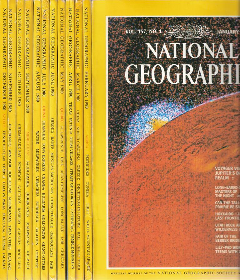 National Geographic Jahrgang 198012 Hefte Januar 1980 - Dezember 1980Sprache: EnglischFormat je Heft: 17,5 x 25,5 x 0,7 cmGewicht zusammen: 4.200 gZustand: teilweise leichte Lagerspuren am Cover,innen jeweils sehr guter Zustand