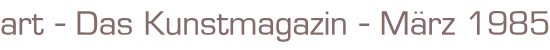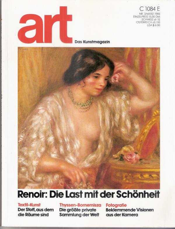 art - Das Kunstmagazin - März 1985Inhalt: Renoir: Die Last mit der SchönheitMagazin 132 SeitenFormat: 21,5 cm x 28 cmGewicht: 393 g Zustand: gut