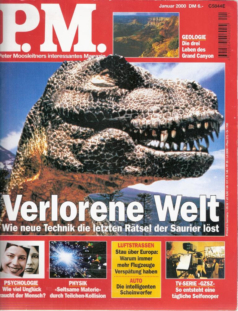 Peter Moosleitners Magazin P.M. Welt des Wissens 1/00Titel: Verlorene WeltWie neue Technik die letzten Rätsel der Saurier löstFormat: 22,5 x 28 cmZustand: gut
