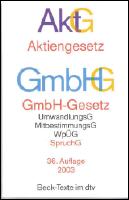 AktG Aktiengesetz; GmbH-Gesetz; UmwandlungsG; MitbestimmungsG; WpÜG; SpruchG ISBN 9783423050104... (ij13 - 2002) 2,50 Euro (Kleinunternehmer im Sinne vom § 19 UStG. Es wird keine MWSt. ausgewiesen.)