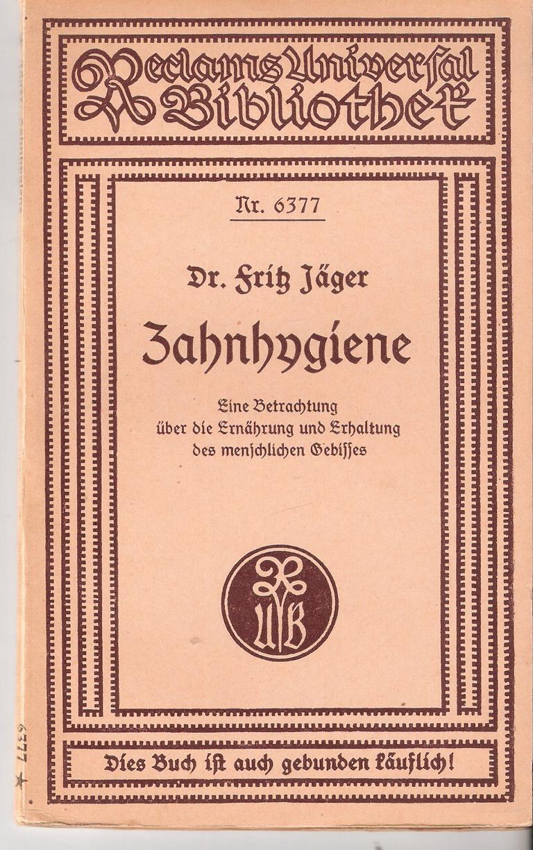 Titel: ZahnhygieneEine Betrachtung über die Ernährungund Erhaltung des menschlichen GebissesRECLAMS UNIVERSAL BIBLIOTHEKNr. 65377Autor: Dr. Fritz JägerVerlag: Philipp Reclam jun.Büchlein 78 SeitenFormat: 10 cm x 15,5 cmGewicht: 50 gZustand: Gut erhaltenes ExemplarSammlerstück - Rarität - Gesundheit - Ernährung