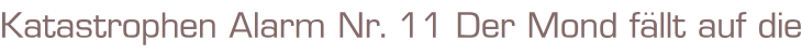 Katastrophen Alarm Nr. 11 Der Mond fällt auf die Erde.Autor: L. D. PalmerRena Verlag 1976Romanheft 63 Seiten Format: 15,5 x 22,5 cmZustand: gut , Titelblattbeschädigt, Seiten sauber
