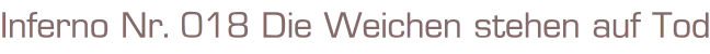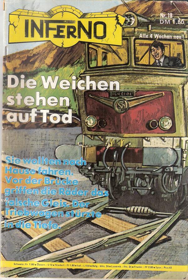 Inferno Nr. 018 Titel: Die Weichen stehen auf TodVerlag: Marken Verlag, KölnRomanheft, 64 SeitenFormat: 15 x 22,5 cmZustand: gut erhaltenes Exemplar,kleine Gebrauchsspuren am Cover